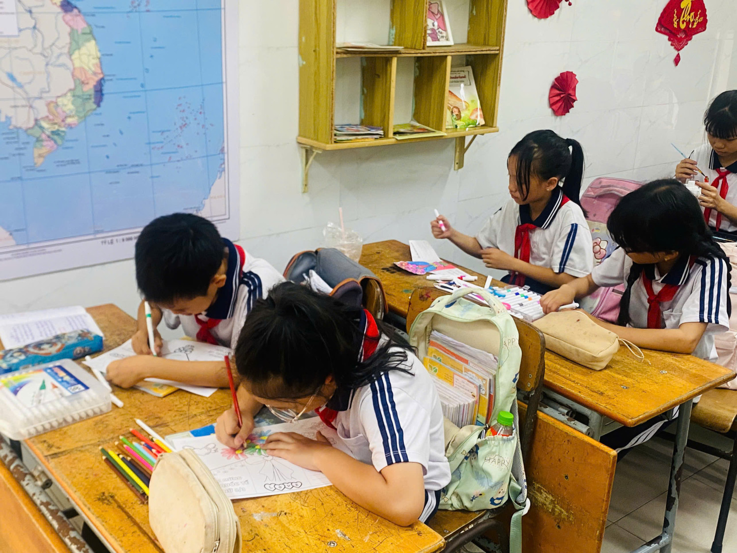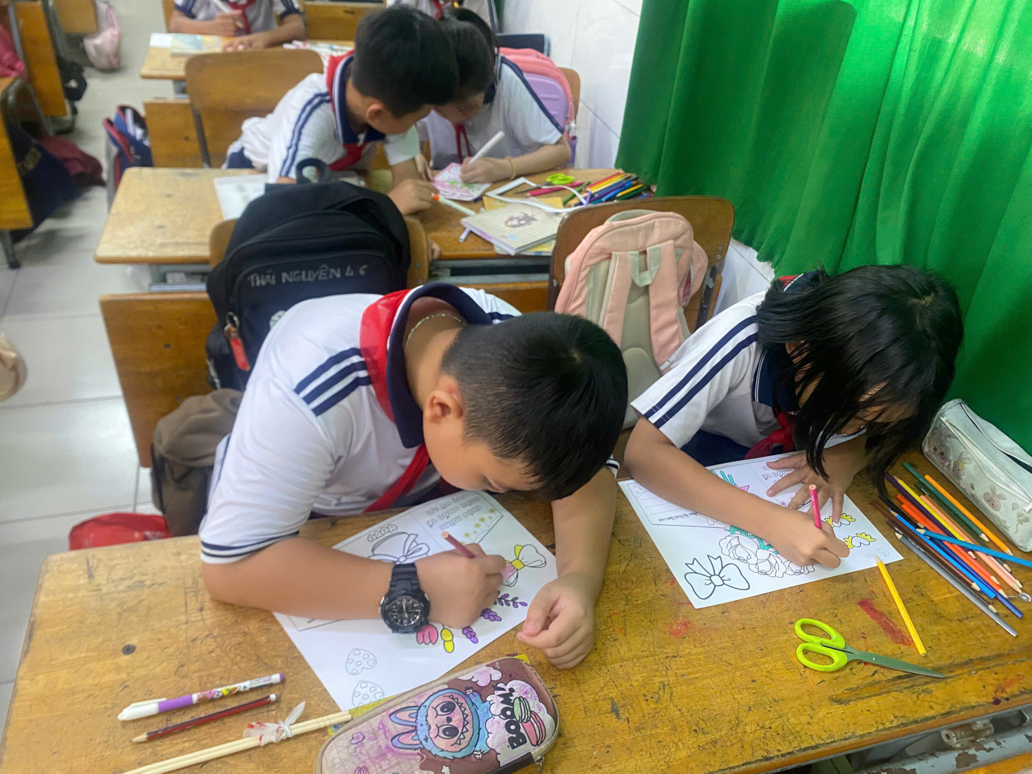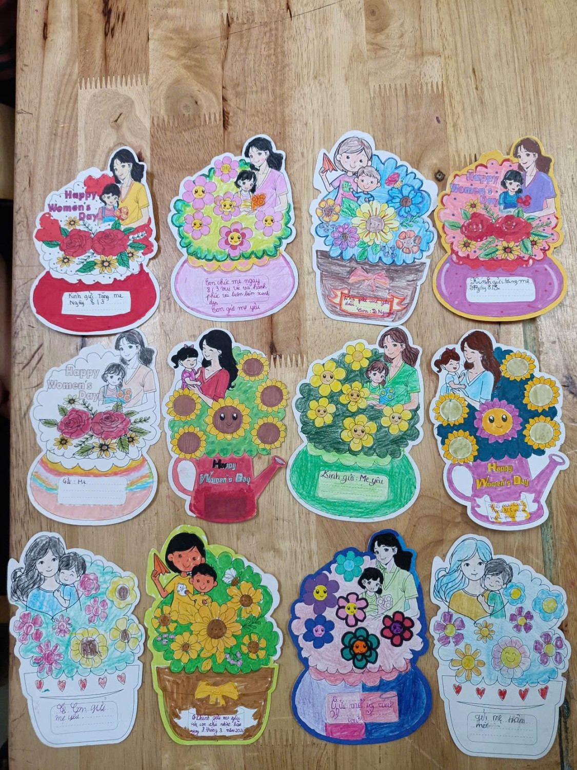 Không khí lớp học trở nên ấm áp và tràn ngập niềm vui khi mỗi em đều háo hức hoàn thành sản phẩm của mình để mang về tặng mẹ. Đây không chỉ là món quà nhỏ mà còn là cách để các em học cách thể hiện tình cảm và sự quan tâm đến người thân.
