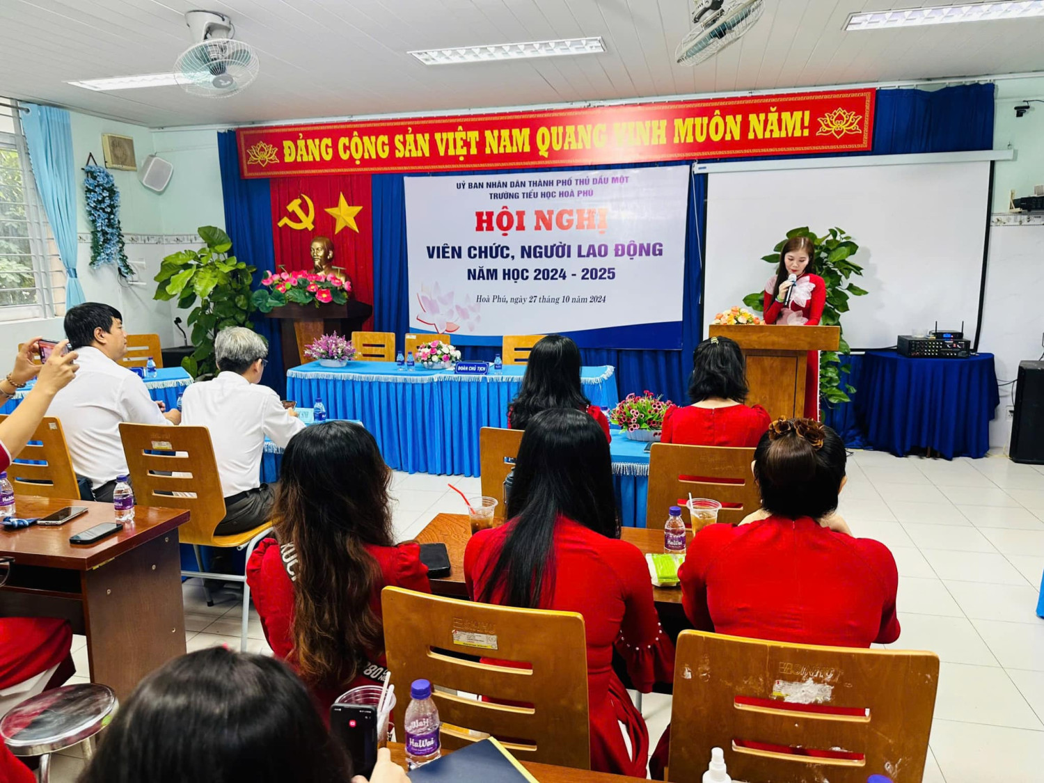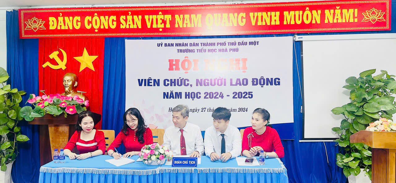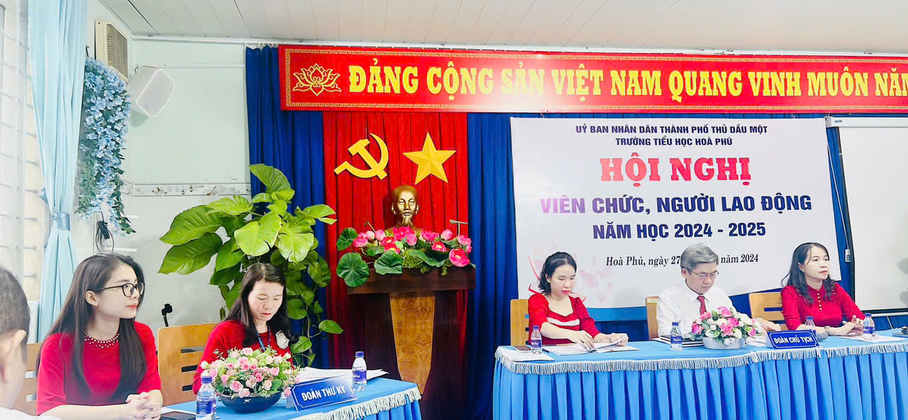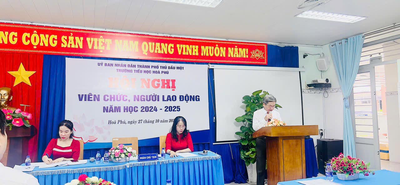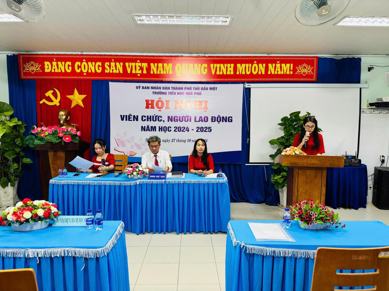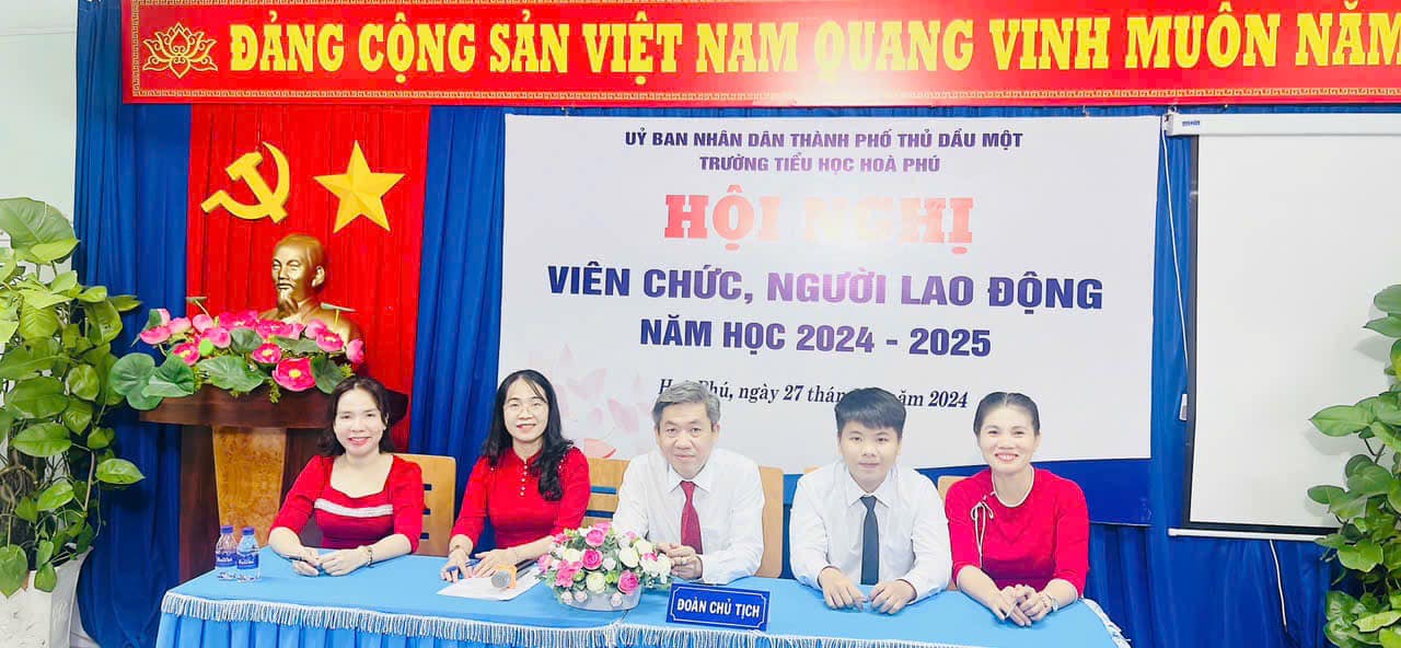 Sáng ngày 27/10/2024 ,CĐCS Tiểu học Hoà Phú đã kết hợp cùng với chính quyền long trọng tổ chức Hội nghị viên chức, người lao động năm học 2024 - 2025.