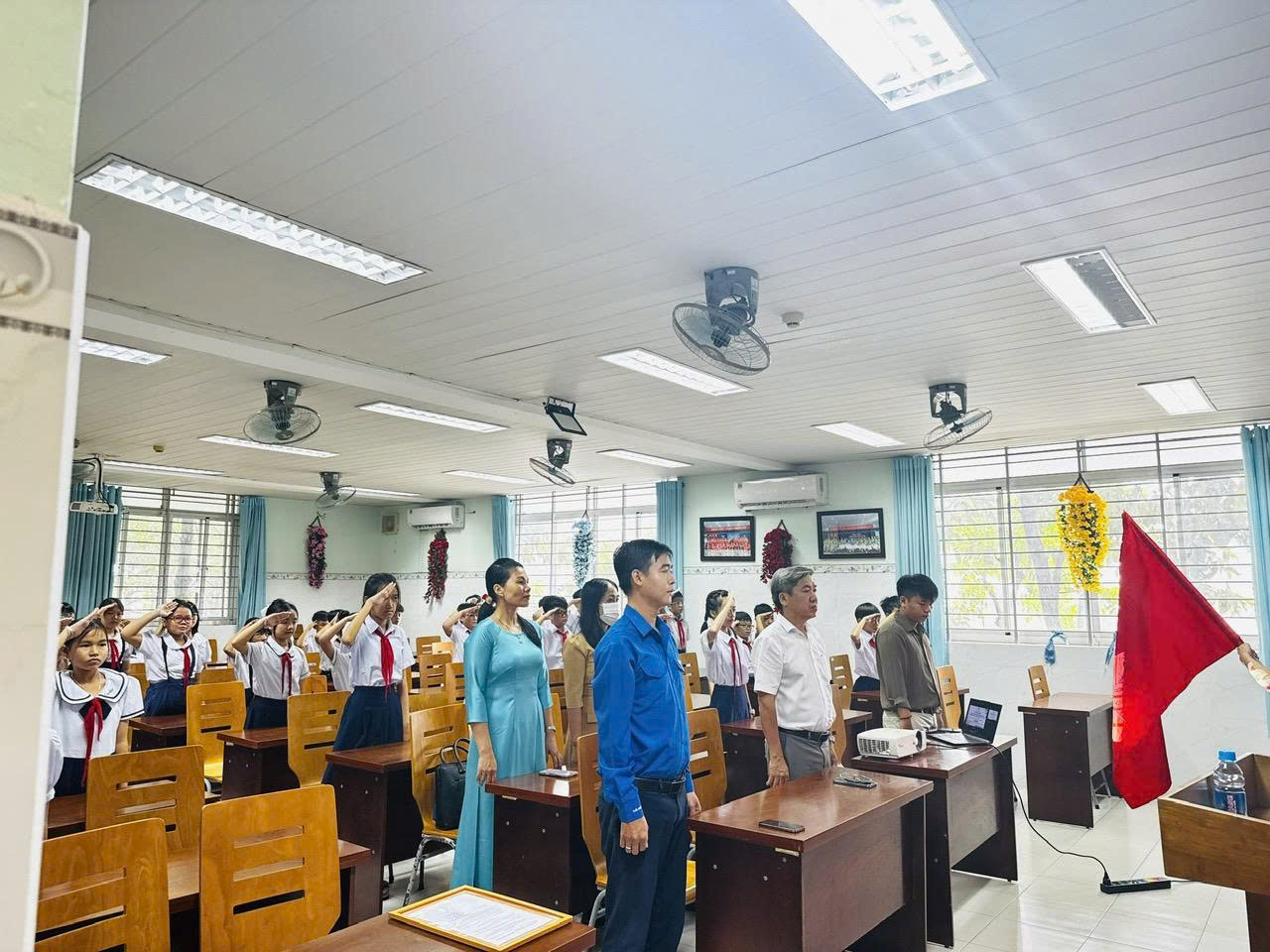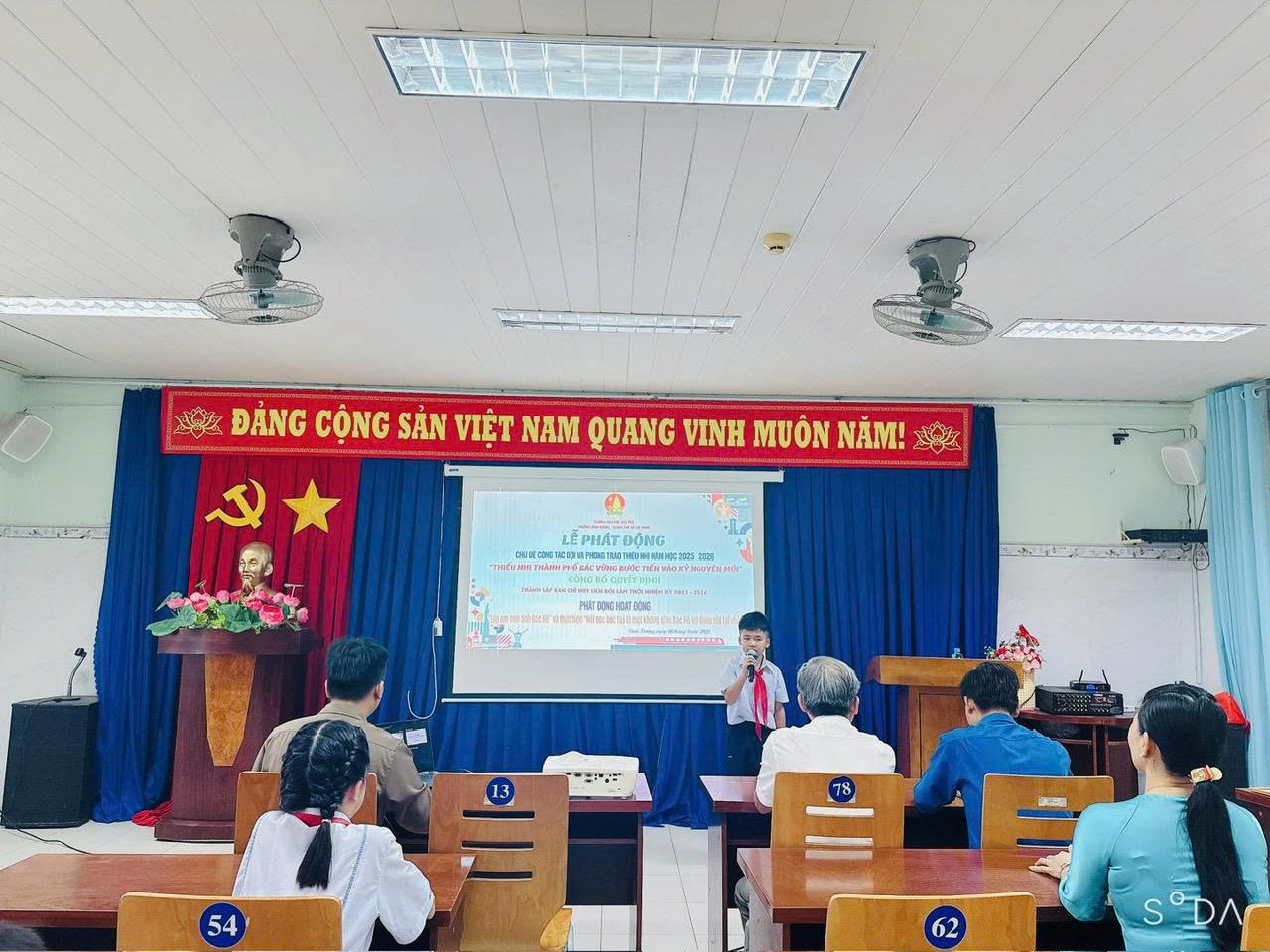 Trong phần trọng tâm của buổi lễ, Liên đội đã chính thức phát động chủ đề năm học mới với khẩu hiệu “Thiếu nhi Thành phố Bác vững bước tiến vào kỷ nguyên mới”, khẳng định tinh thần sẵn sàng của thiếu nhi nhà trường.