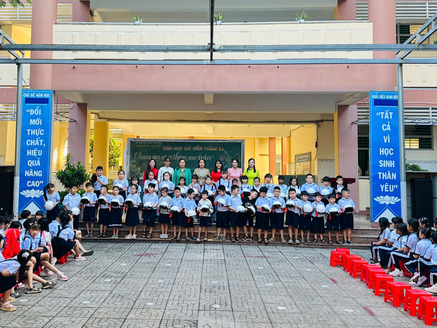 Đặc biệt, nhà trường vinh dự được Công ty Honda Việt Nam tài trợ gần 600 mũ bảo hiểm chất lượng, nhằm giúp các em có thêm điều kiện tham gia giao thông an toàn hơn.