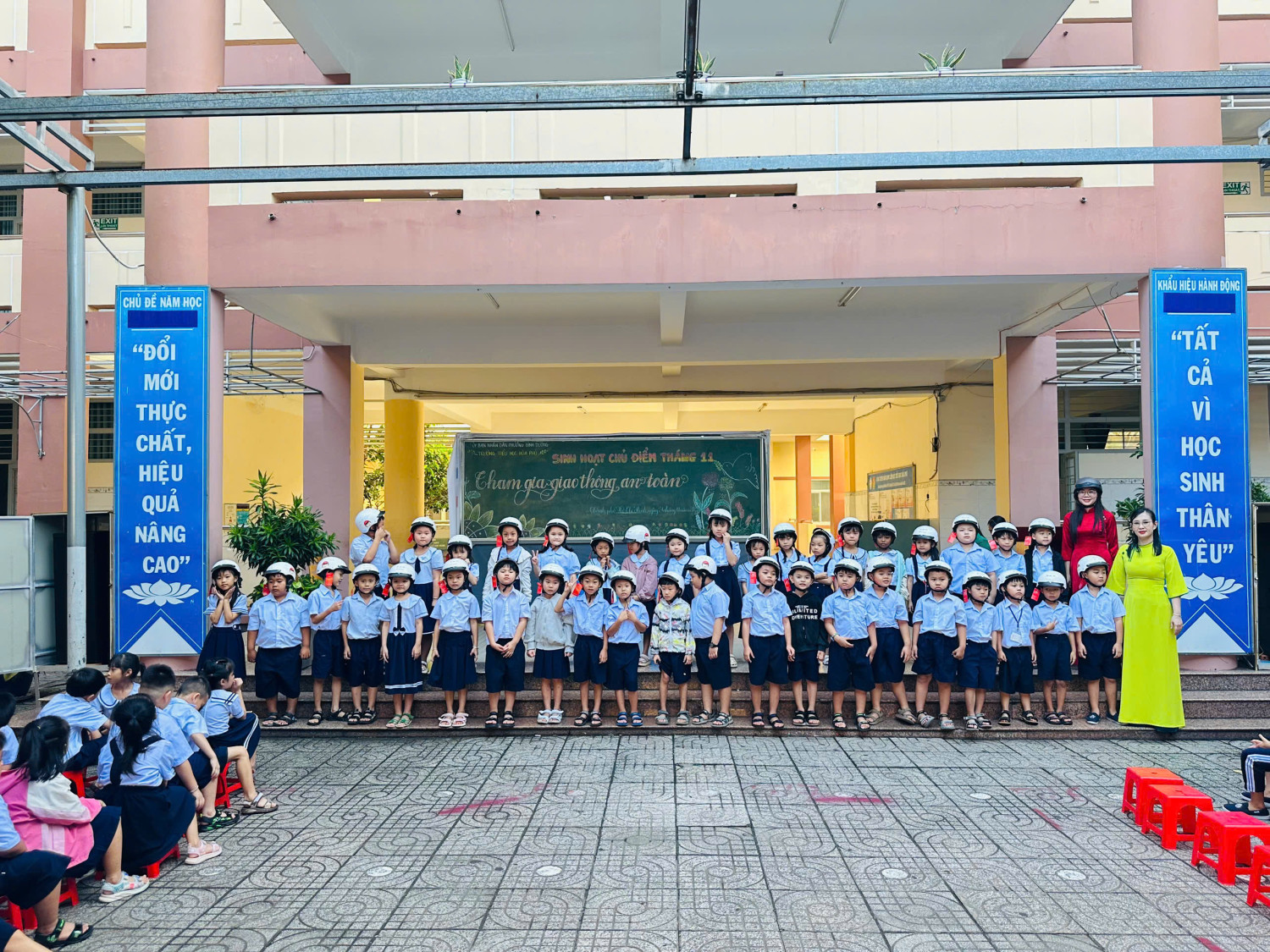 Trong buổi sinh hoạt, cô Vi Thị My – thành viên tổ khối 1 – đã hướng dẫn các em cách lựa chọn mũ bảo hiểm đạt chuẩn và đội mũ bảo hiểm đúng cách khi tham gia giao thông. Các em học sinh hào hứng thực hành và trả lời các câu hỏi liên quan đến kỹ năng tự bảo vệ bản thân khi đi đường.