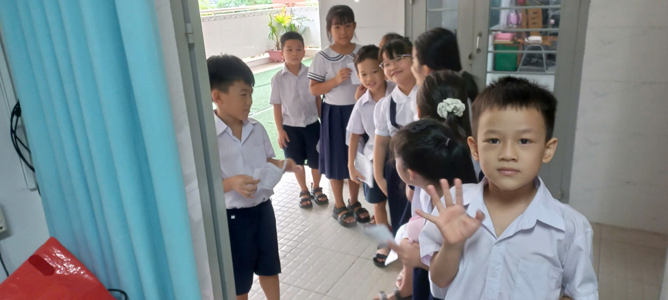 Quá trình tổ chức tiêm chủng được Trạm Y tế phường Bình Dương phối hợp với trường học Tiểu học Hòa Phú chuẩn bị địa điểm, danh sách học sinh, …đảm bảo đúng quy định về an toàn tiêm chủng. Trẻ được khám sàng lọc, tiêm vắc xin, theo dõi sau tiêm ít nhất 30 phút và phát giấy chứng nhận đã tiêm vắc xin bạch hầu – uốn ván.
